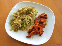 - Cabbage stew can also be served with a simple sauce. The sauce is especially good for the vegetarian version. Crush 3-4 garlic cloves and mix with app. 1 cup of sour cream or yoghurt. Serve separately.