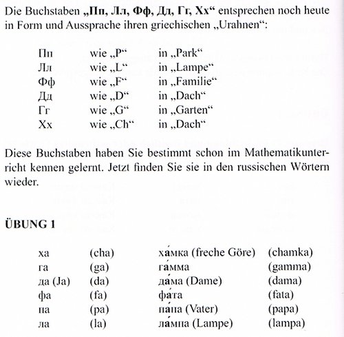 Griechische Buchstaben des russischen Alphabets, Ausschnitt aus der Lektion 3 des Buches „Russisches Alphabet: Schnell erlernt für jedermann“