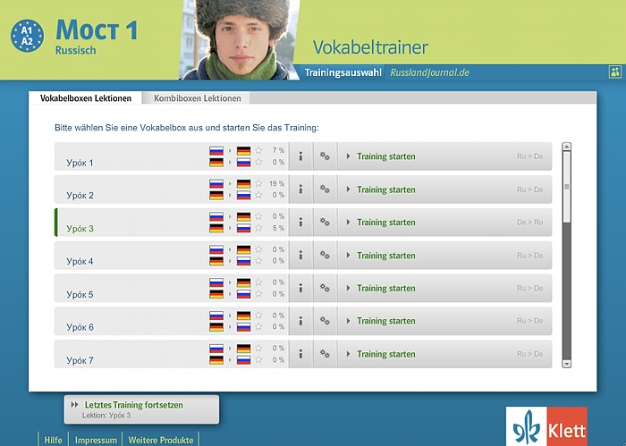 Vokabelboxen Lektionen auf der CD-ROM zum MOCT 1 Vokabeltrainer Russisch