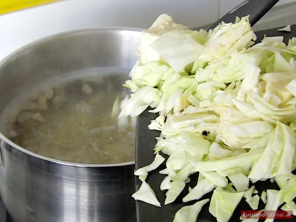 Weißkohl hinzufügen und weitere 5 Minuten kochen.