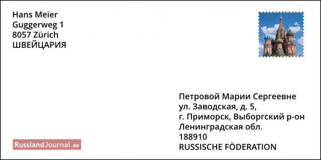 Aufbau der Postadresse bei Briefen nach Russland