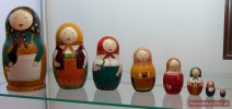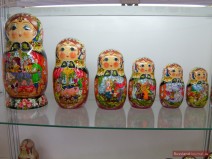 Interessant ist der Vergleich zwischen zwei sehr unterschiedlichen Matroschkas mit Motiven aus dem Märchen von Alexander Puschkin „Ruslan und Ljudmila“ (im Regal untereinander, 29 und 30 Teile). Die in hellen leuchtenden Tönen gehaltene Matroschka deutet darauf hin, dass die Geschichte gut ausgeht. Die dunkle, aufwendig vergoldete Matroschka dagegen, vermittelt den Eindruck, dass die Charaktere einiges durchmachen und schwere Prüfungen bestehen müssen, um das Böse zu besiegen.