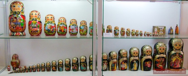 Ein besonderes Ausstellungsstück im Museum in Moskau ist die Matroschka-Babuschka: eine Oma, die viele Enkelkinder in ihrem Bauch versteckt (siehe Video).